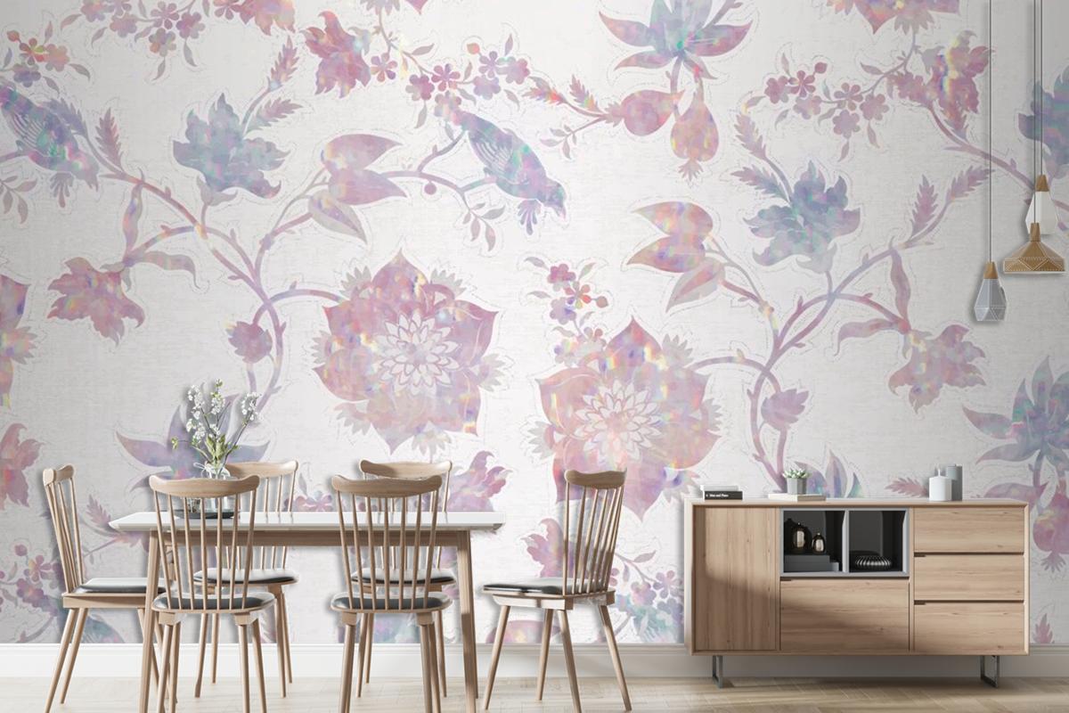 Vintage Doğa Holografik Kompozisyon Duvar Kağıdı