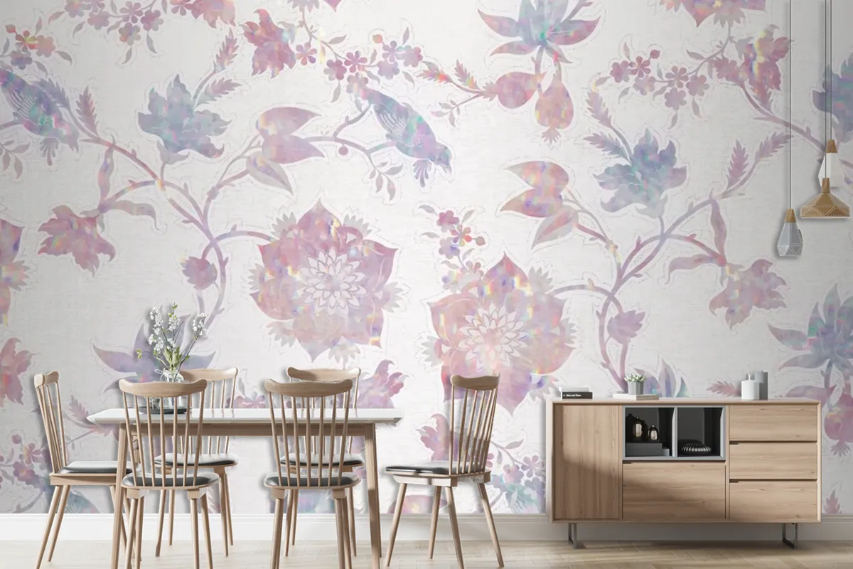 Vintage Doğa Holografik Kompozisyon Duvar Kağıdı