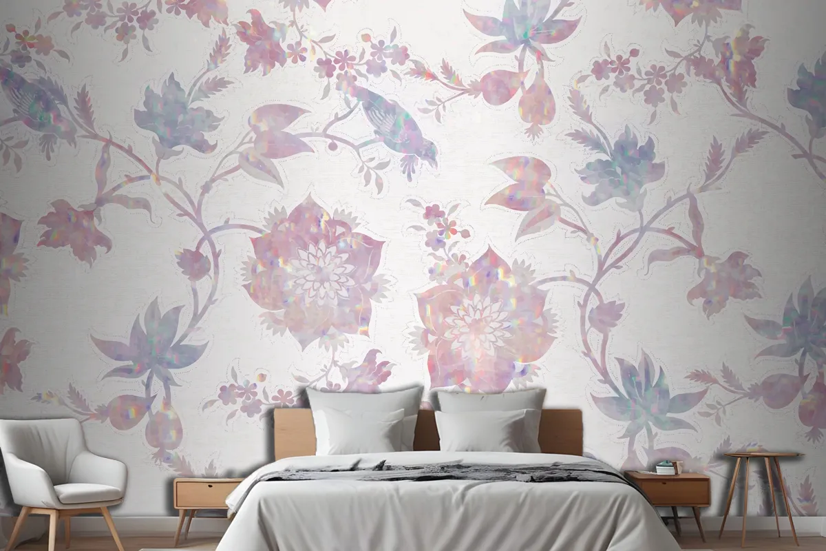 Vintage Doğa Holografik Kompozisyon Yatak Odası Duvar Kağıdı