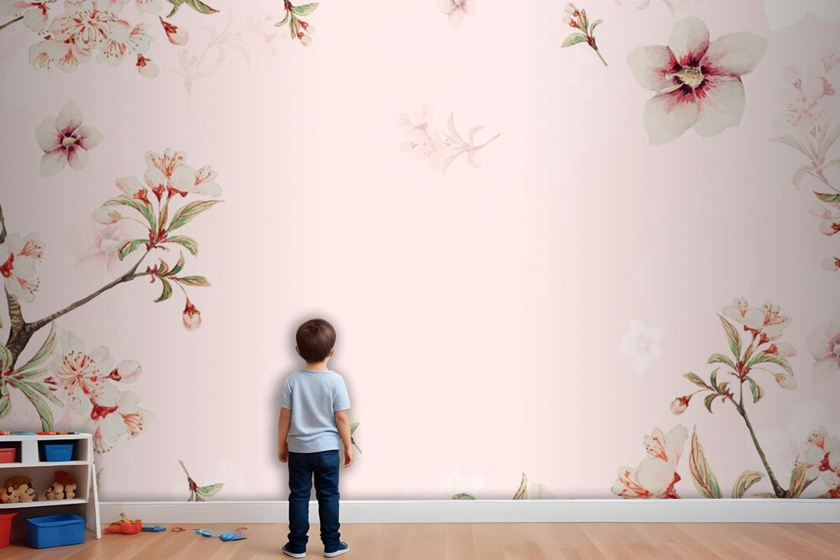 Vintage Japon Çiçek Arka Plan Şeftali Çiçekleri Çocuk Odası Duvar Kağıdı