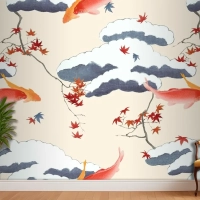 Vintage Japon Dikişsiz Desen Duvar Kağıdı