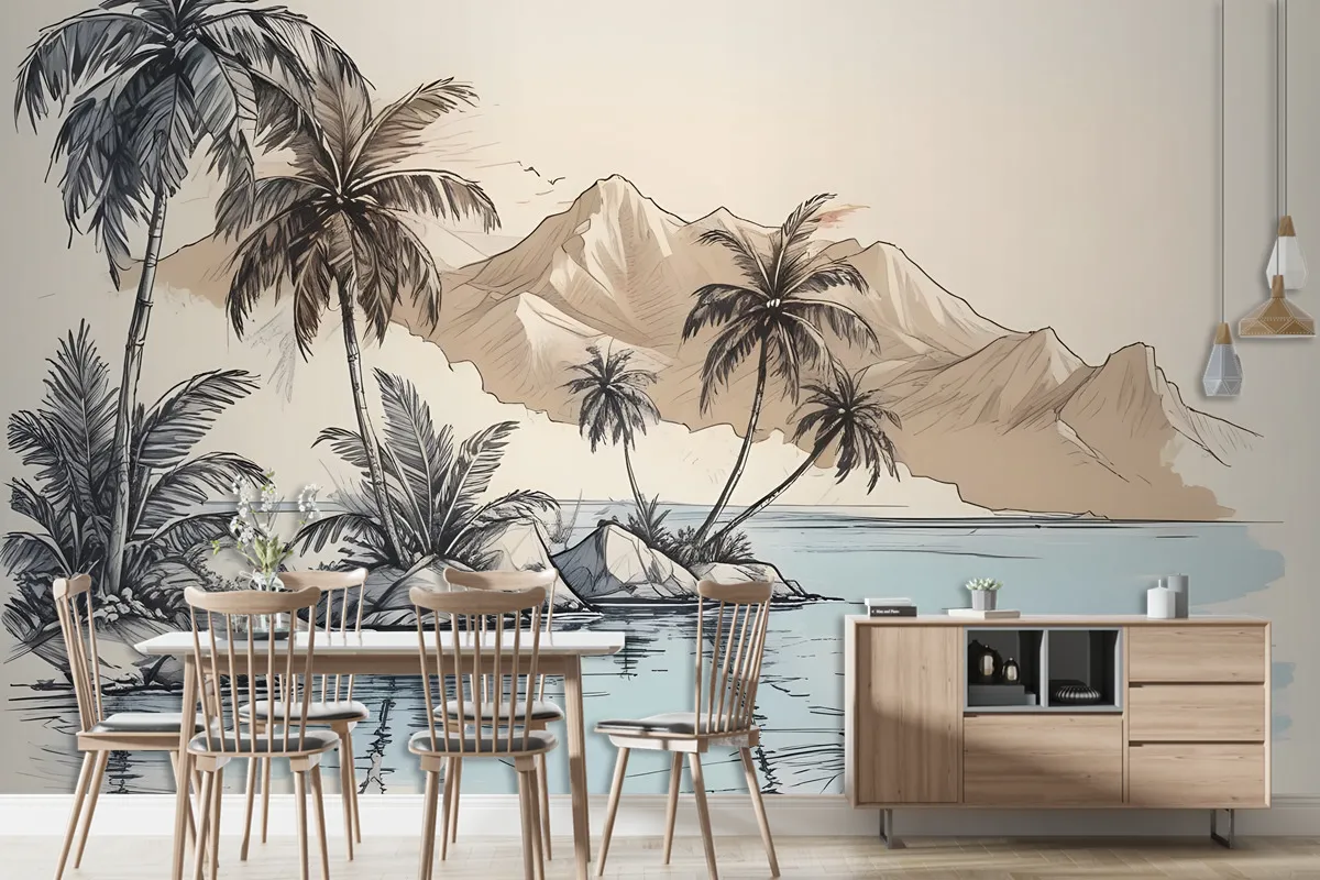 Vintage Kömür Tropikal Palmiye Ağacı Ve Yaz Plaj Duvar Kağıdı