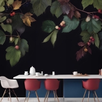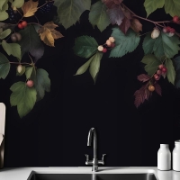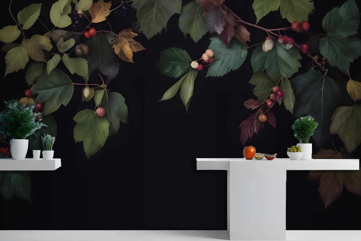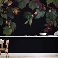 Vintage Koyu Botanik İncir Ağacı Mutfak Duvar Kağıdı