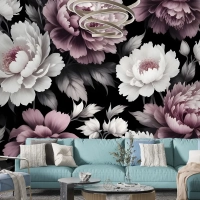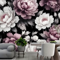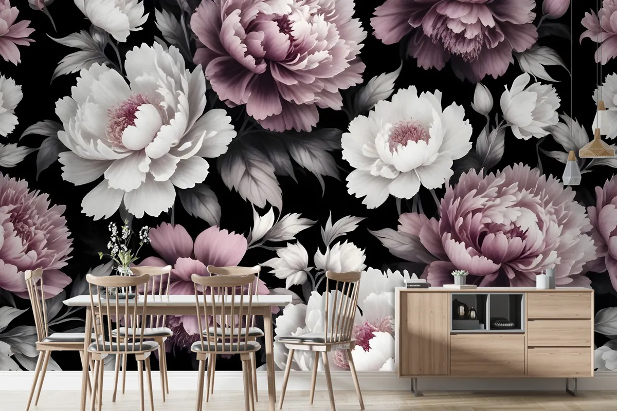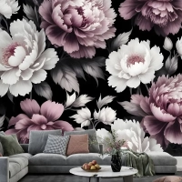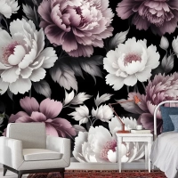 Vintage Koyu Büyük Şakayık Çiçeği Duvar Kağıdı