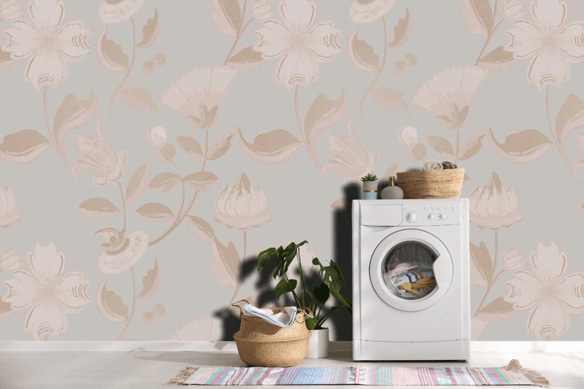 Vintage Nötr Çiçek Desenli Arka Plan Duvar Kağıdı