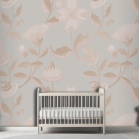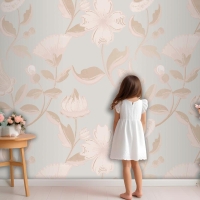 Vintage Nötr Çiçek Desenli Çocuk Odası Duvar Kağıdı