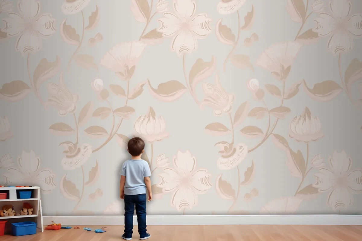 Vintage Nötr Çiçek Desenli Çocuk Odası Duvar Kağıdı