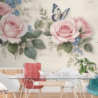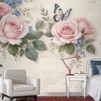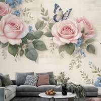 Vintage Pastel Pembe Çiçekli Duvar Kağıdı