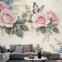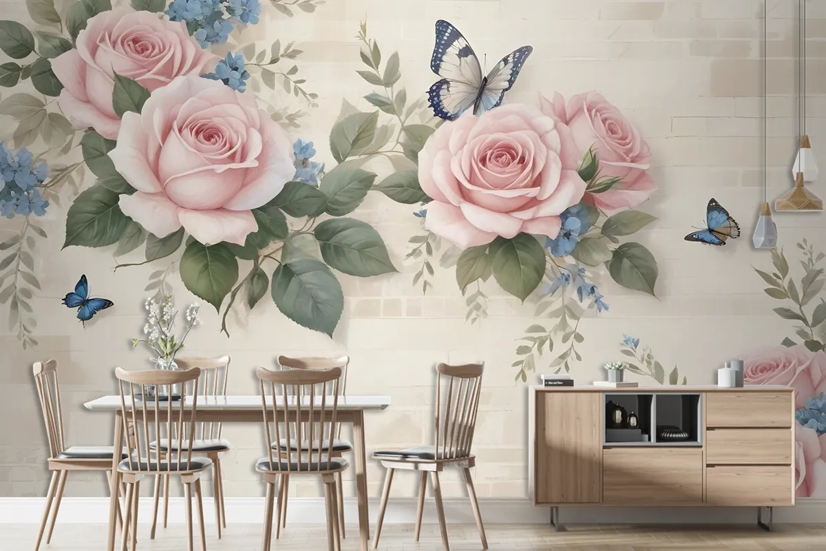 Vintage Pastel Pembe Çiçekli Duvar Kağıdı