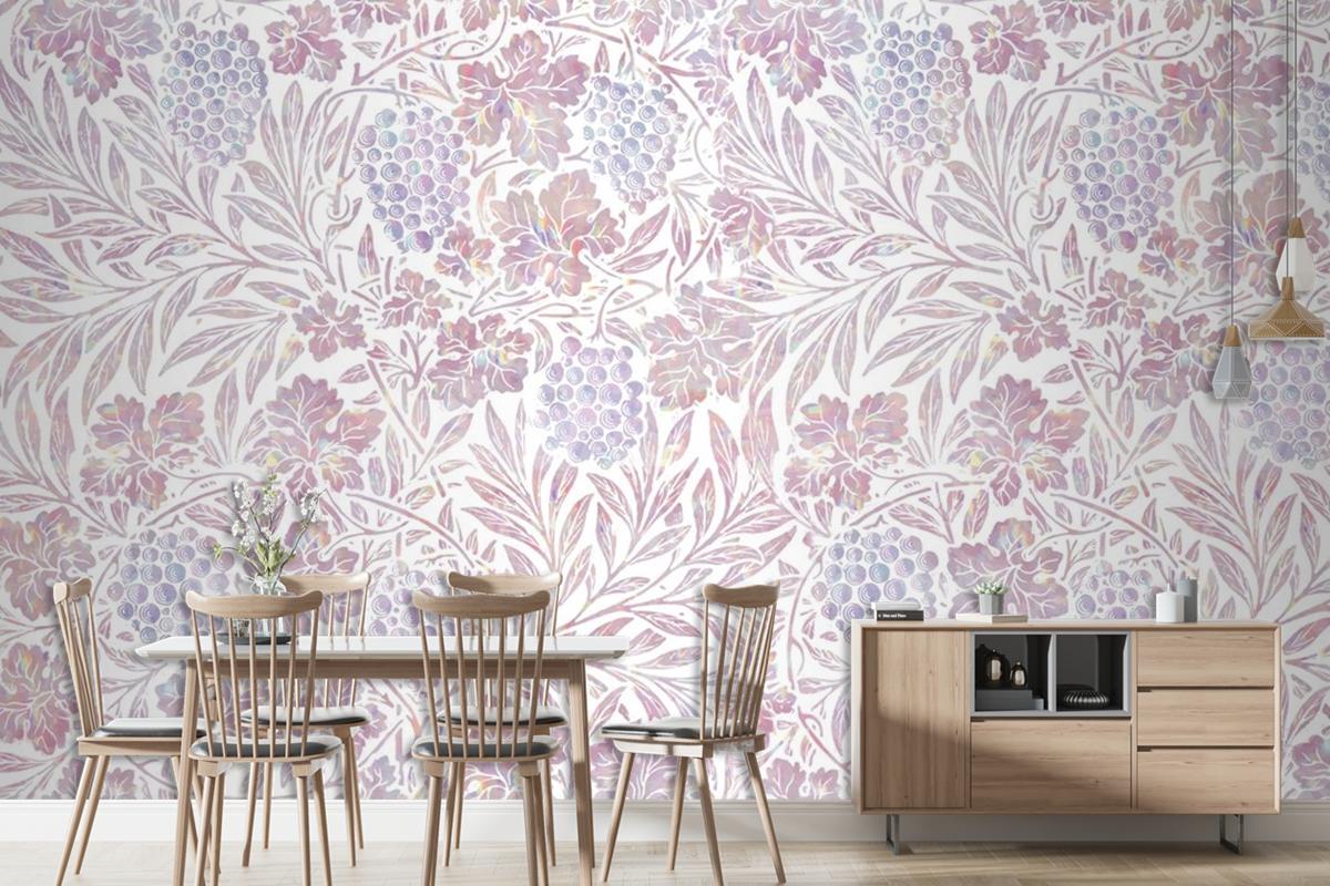 Vintage Pembe Çiçek Holografik Duvar Kağıdı