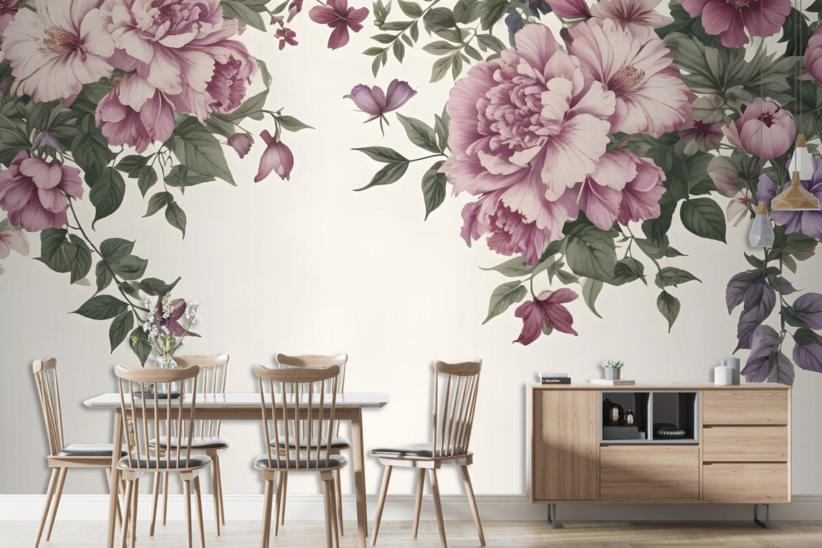 Vintage Pembe Çiçekli Sanat Duvar Kağıdı