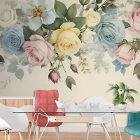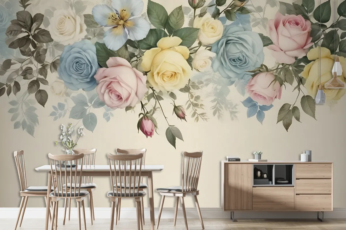 Vintage Renkli Çiçekli Duvar Kağıdı