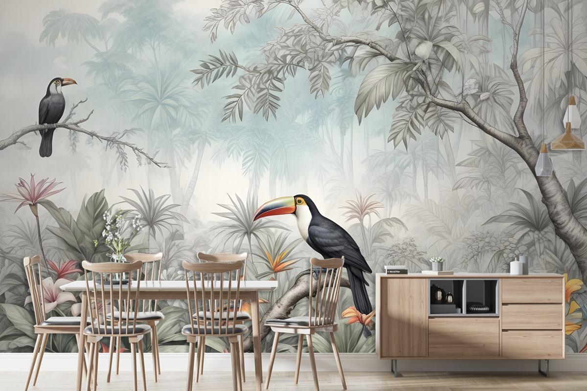 Vintage Tarihi Cennet Kuşu Sanat Duvar Kağıdı