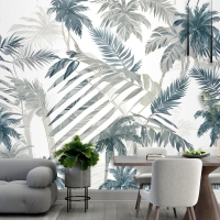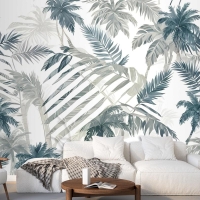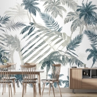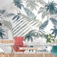 Vintage Tropikal Yaprak Desenli Duvar Kağıdı