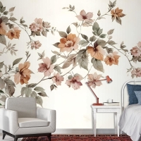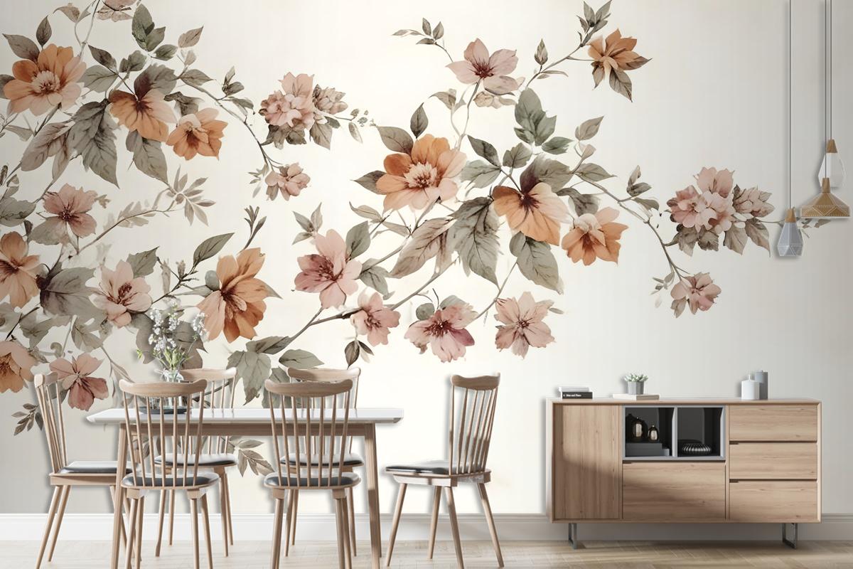 Vintage Turuncu Kahverengi Çiçekler Duvar Kağıdı