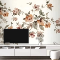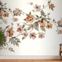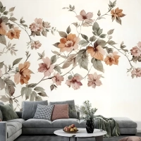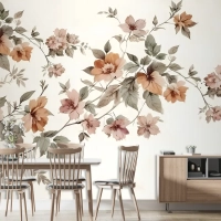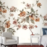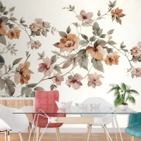Vintage Turuncu Kahverengi Çiçekler Duvar Kağıdı