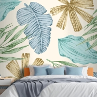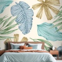 Vintage Yapraklı Tropikal Arka Plan Yatak Odası Duvar Kağıdı