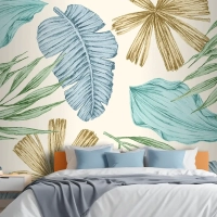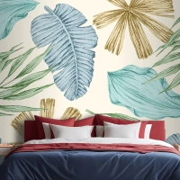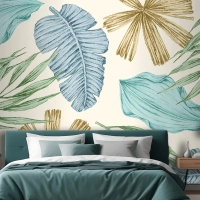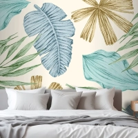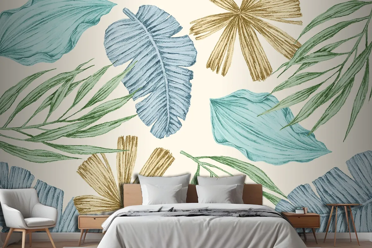 Vintage Yapraklı Tropikal Arka Plan Yatak Odası Duvar Kağıdı