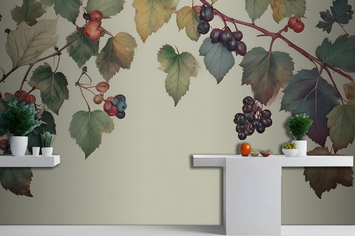 Vintage Yeşil Botanik İncir Ağacı Mutfak Duvar Kağıdı