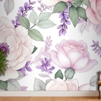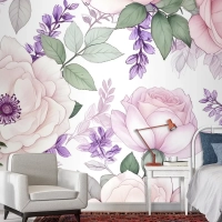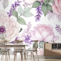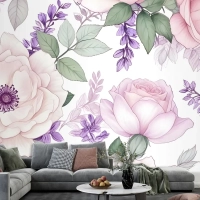Wisteria Duvar Kağıdı Ile Suluboya Pembe Çiçek Desenli