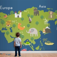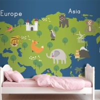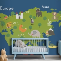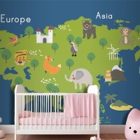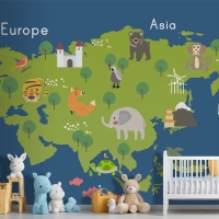 Yaban Hayatı Habitatlarının Çizim Stili Seti Çocuk Odası Duvar Kağıdı