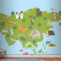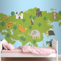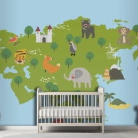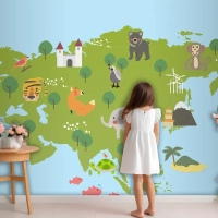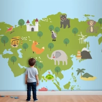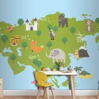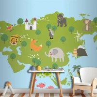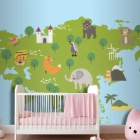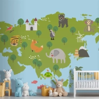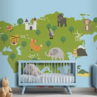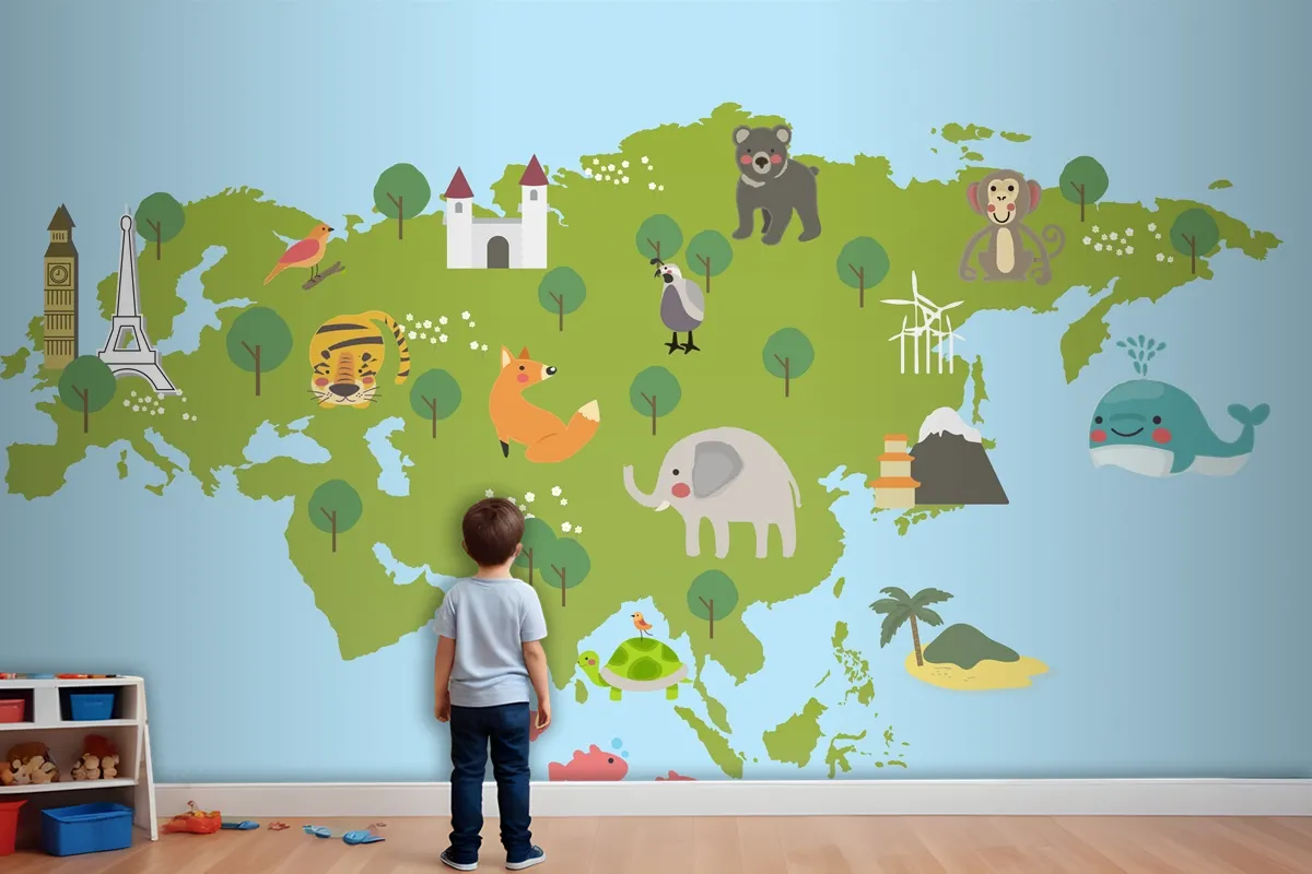 Yaban Hayatı Habitatlarının Çizim Stili Seti Çocuk Odası Duvar Kağıdı