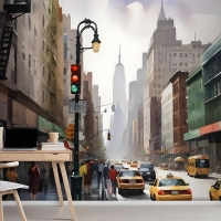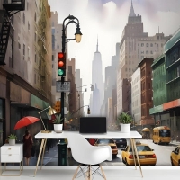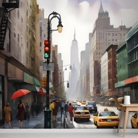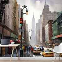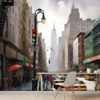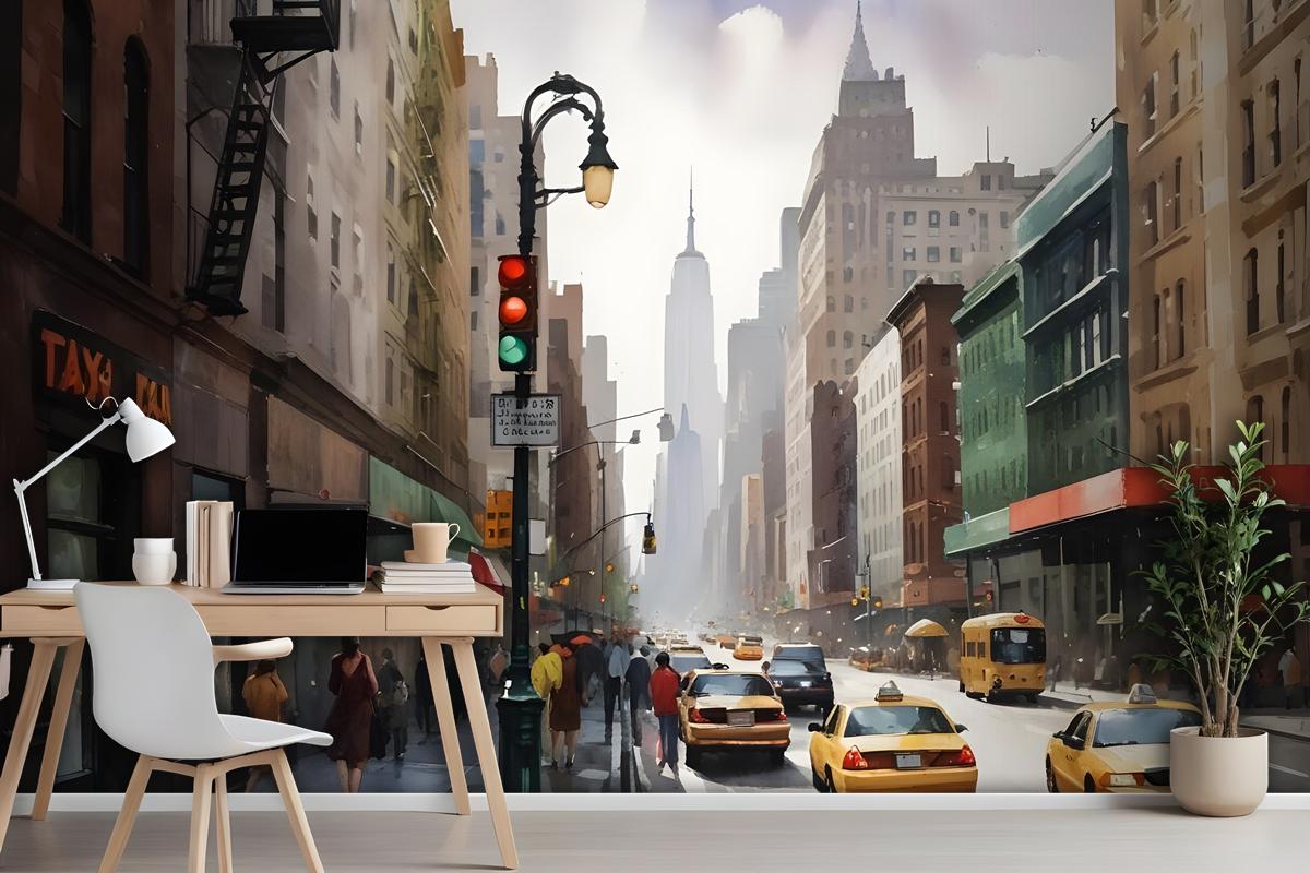 Yağlıboya Stil New York Şehri Sokak Görünümü Manzara Duvar Kağıdı Duvar