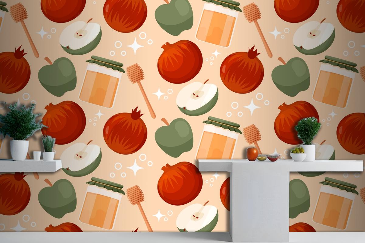 Yahudi Yeni Yılı Roş Aşana Kutlaması Duvar Kağıdı Için Elle Çizilmiş Desen Tasarımı