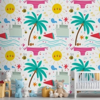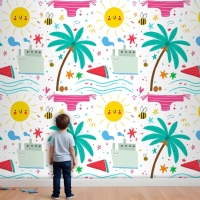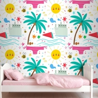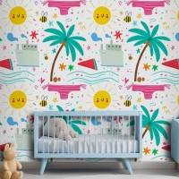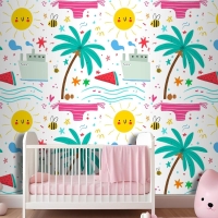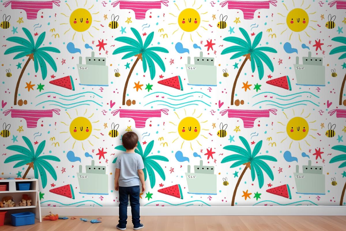 Yakınlaştırma Çocuk Odası Duvar Kağıdı Duvar İçin Yaz Deseni
