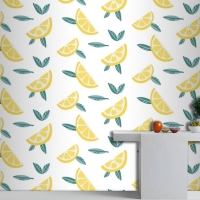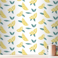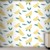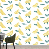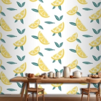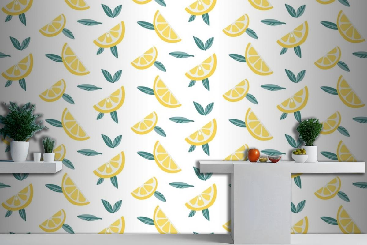 Yaprakları Dikişsiz Desenli Limon Meyve Dilimleri Mutfak Duvar Kağıdı