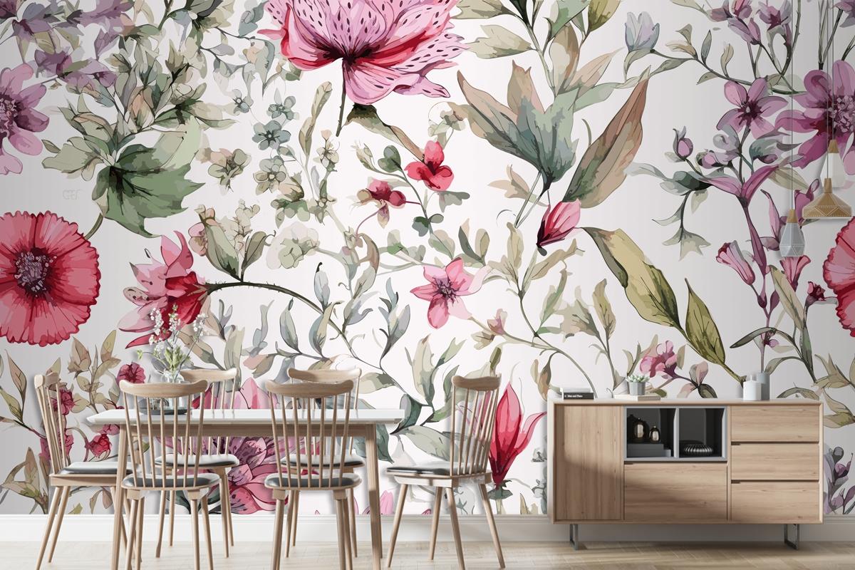 Yaprakları Ile Renkli Çiçek Arka Plan Duvar Kağıdı