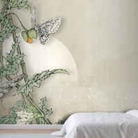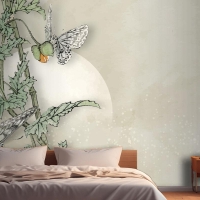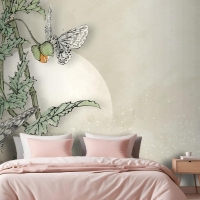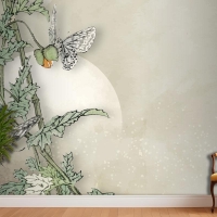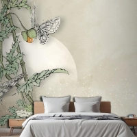 Yapraklı Kelebek Çerçeve Tasarımı Yatak Odası Duvar Kağıdı