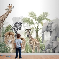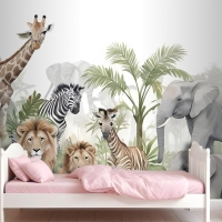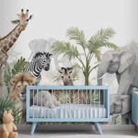 Yapraklı Tropikal Hayvanlar Çocuk Odası Duvar Kağıdı