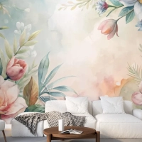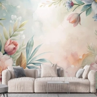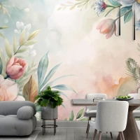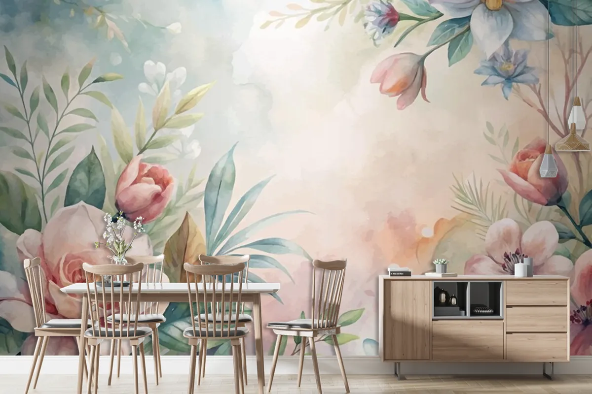 Yemyeşil Çiçek Ve Yaprakların Suluboya Arka Planı Duvar Kağıdı