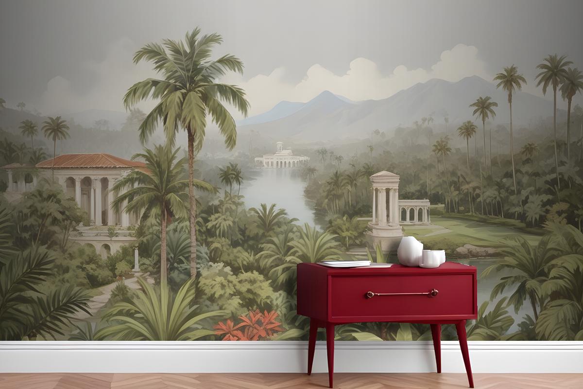 Yemyeşil Palmiye Ağaçları Ile Tropikal Manzara Egzotik Bitkiler Antre Hol Koridor Duvar Kağıdı