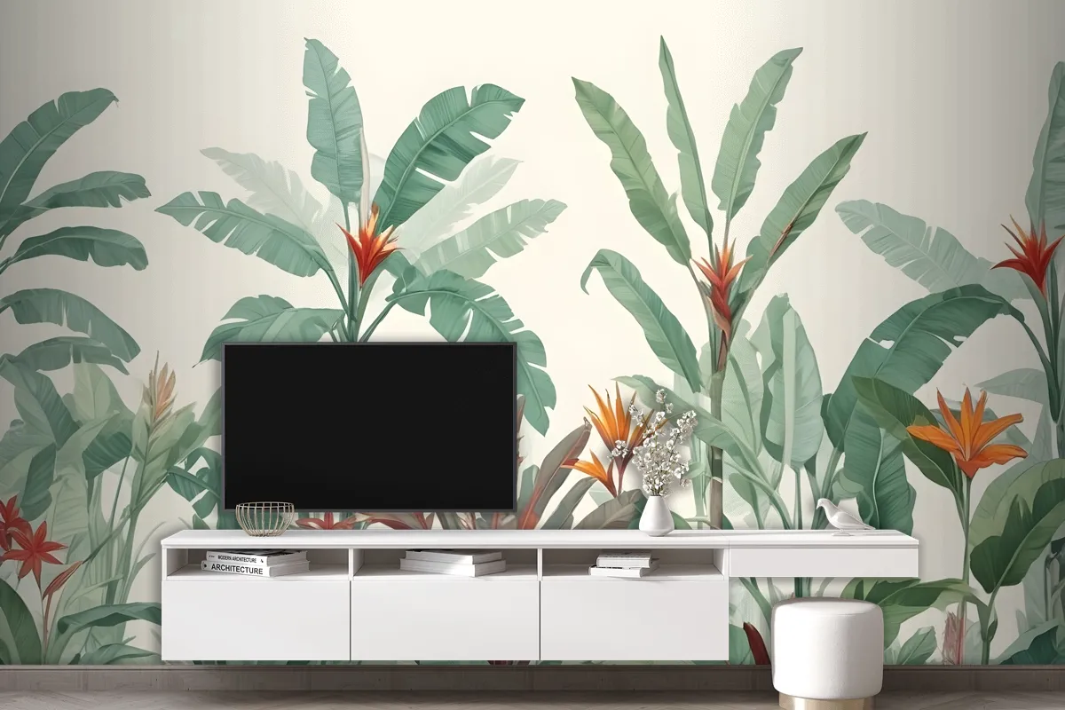 Yemyeşil Yeşillik Oturma Odası Salon Duvar Kağıdı Tropikal Orman Sahnesi