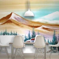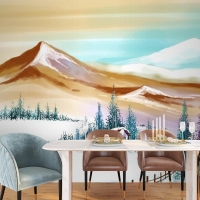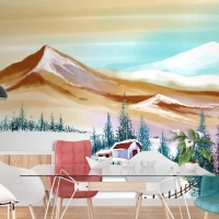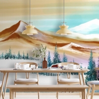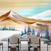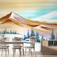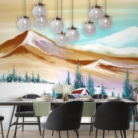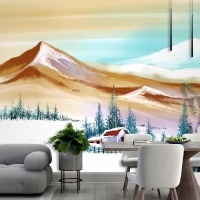 Yeni Yıl Ve Noel Ağacı Dağlarda Kış Manzarası Yemek Odası Duvar Kağıdı