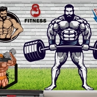 Yeşil Çim Halter Gym Fitness Duvar Kağıdı