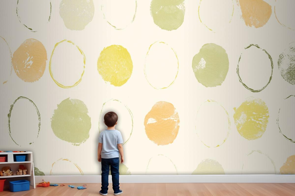 Yeşil Daire Desen Arka Plan El Yapımı Baskılar Çocuk Odası Duvar Kağıdı