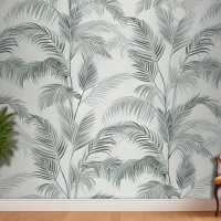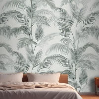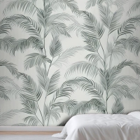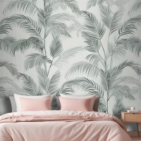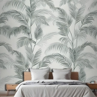 Yeşil Mürekkep Tropikal Desen Yatak Odası Duvar Kağıdı