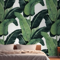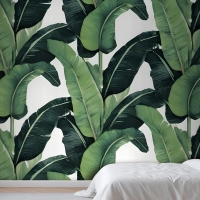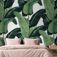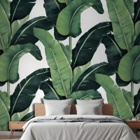 Yeşil Muz Yaprağı Desen Yatak Odası Duvar Kağıdı