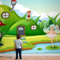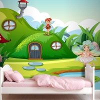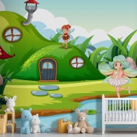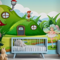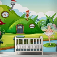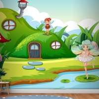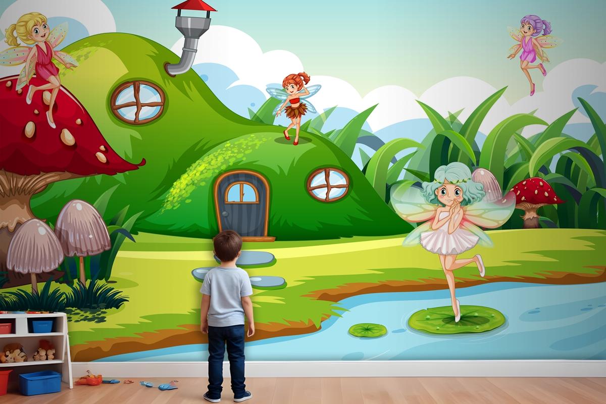Yeşil Sahnede Fantezi Periler Çocuk Odası Duvar Kağıdı