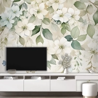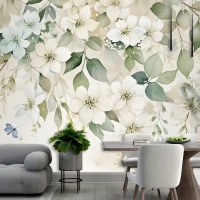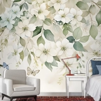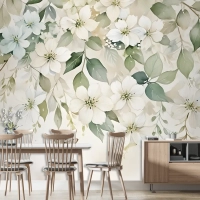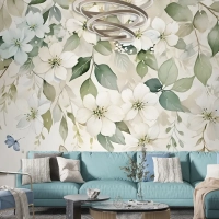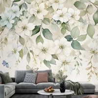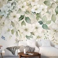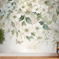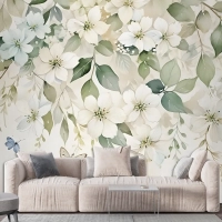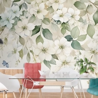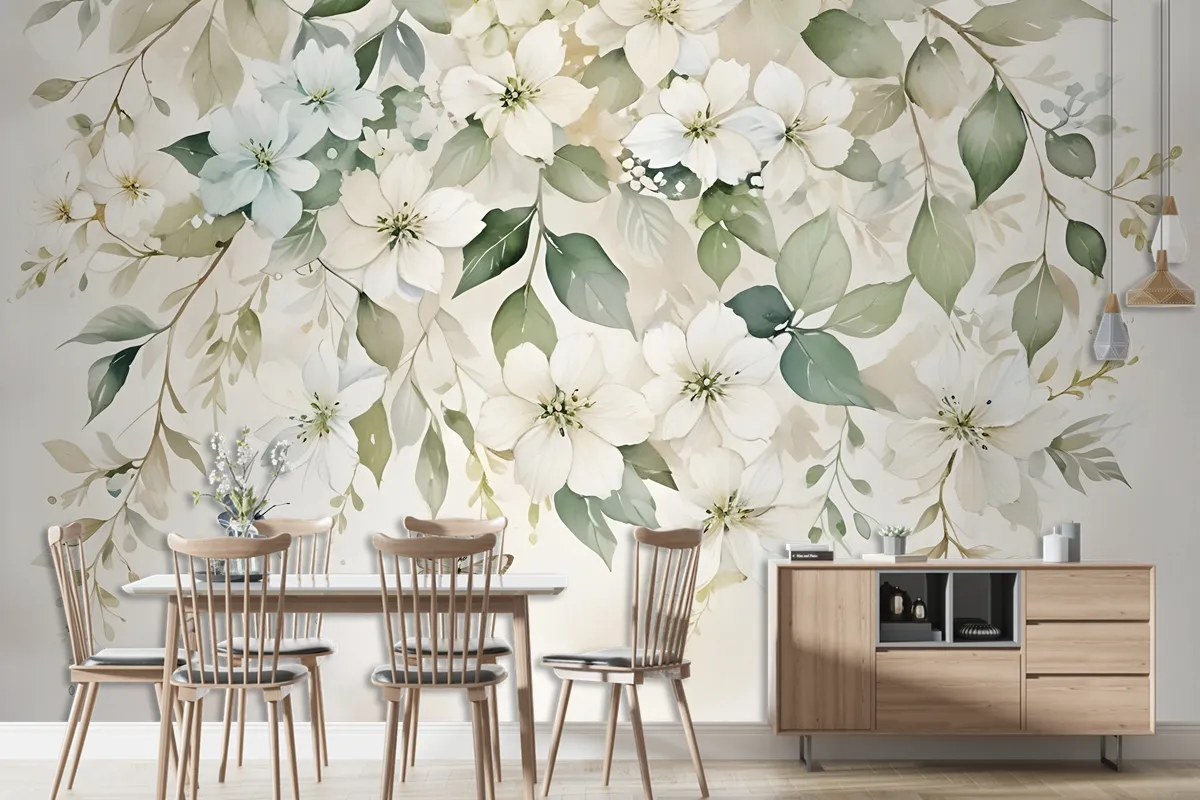 Yeşil Yapraklı Suluboya Yumuşak Çiçek