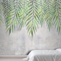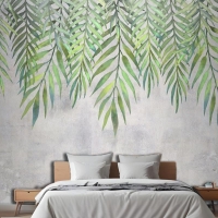 Yukarıdan Asılı Suluboya Yaprakları Yatak Odası Duvar Kağıdı