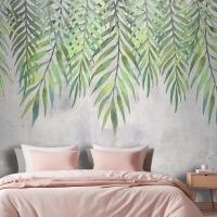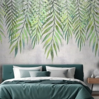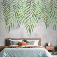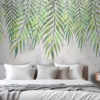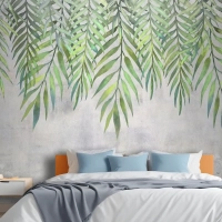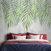 Yukarıdan Asılı Suluboya Yaprakları Yatak Odası Duvar Kağıdı