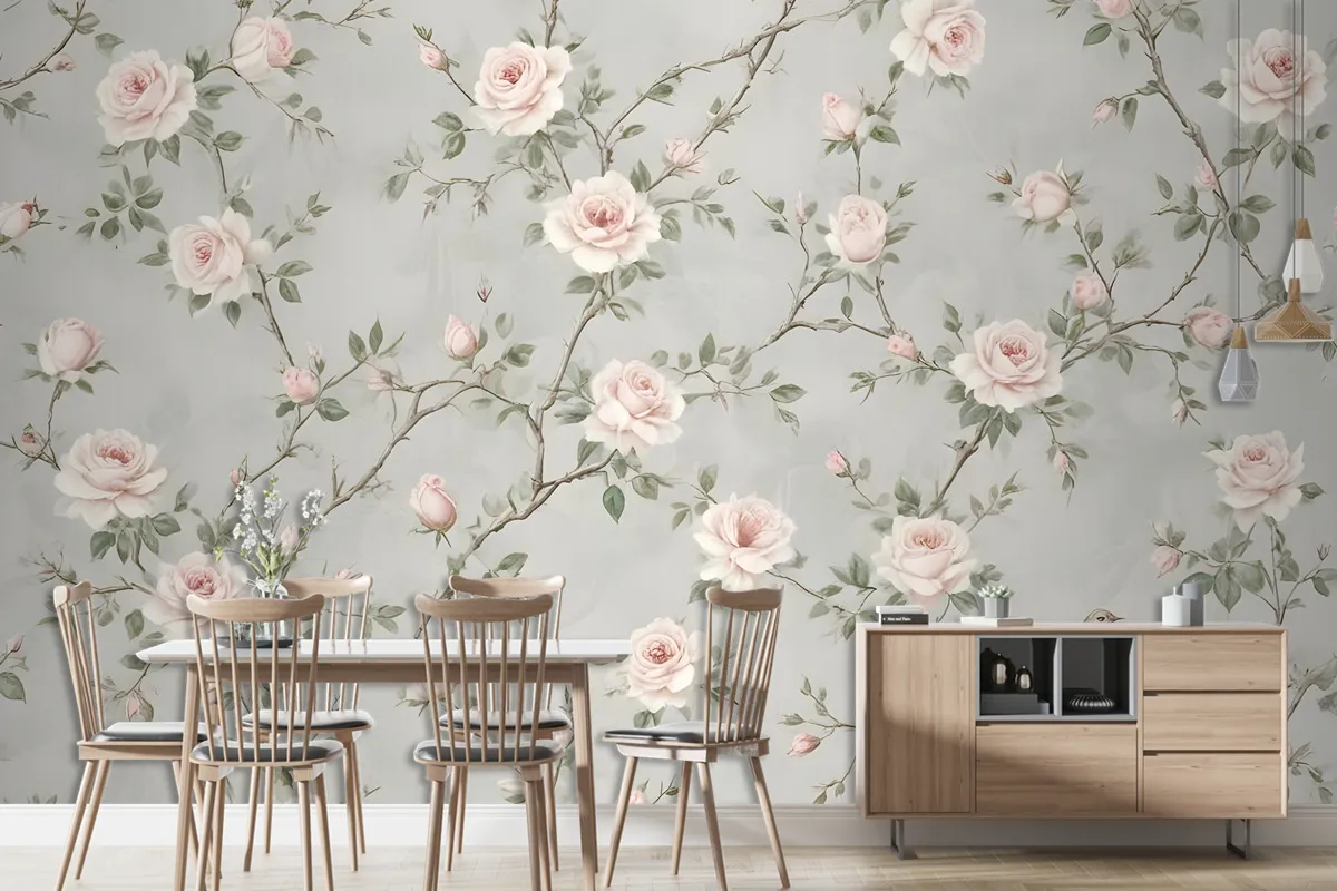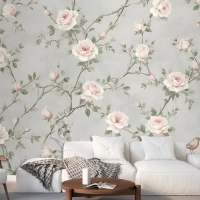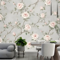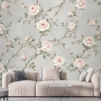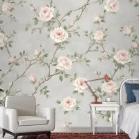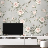Yumuşak Chinoiserie Şakayık Ağacı Çiçeği Sanat Duvar Kağıdı