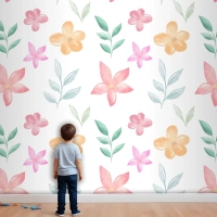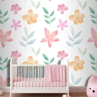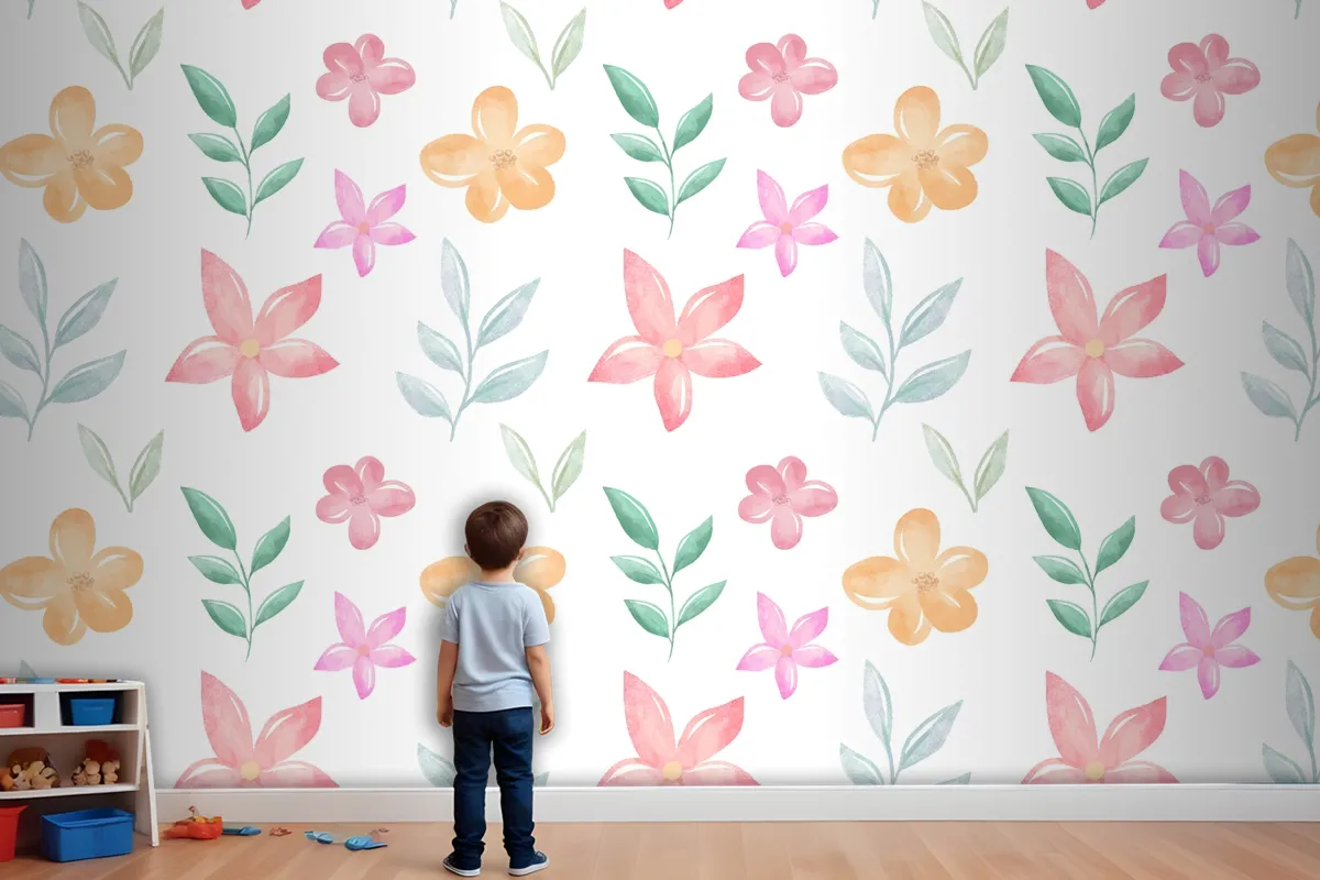 Yumuşak Renklerle Arka Plan Çiçek Suluboya Çocuk Odası Duvar Kağıdı