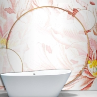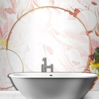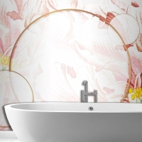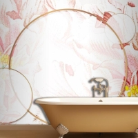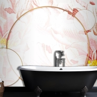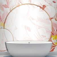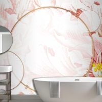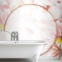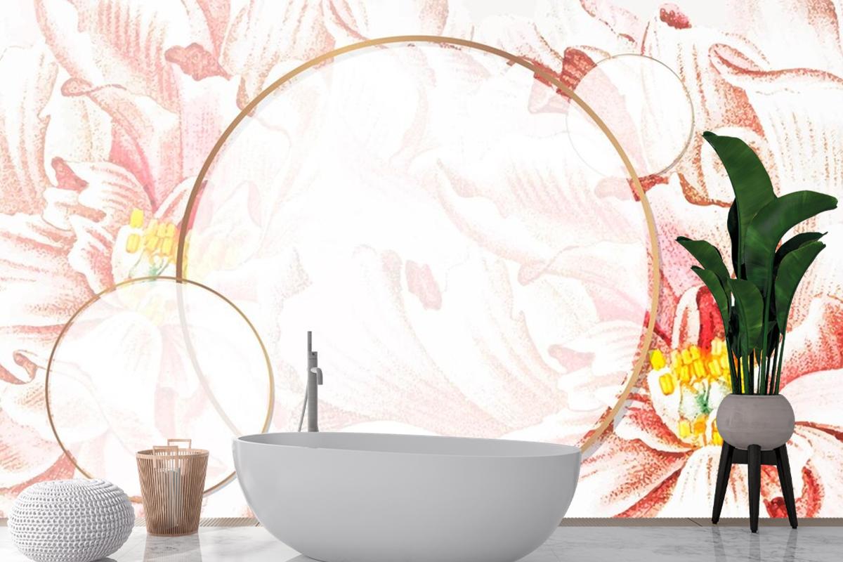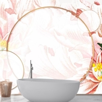 Yuvarlak Çiçek Şakayık Çerçeve Banyo Duvar Kağıdı