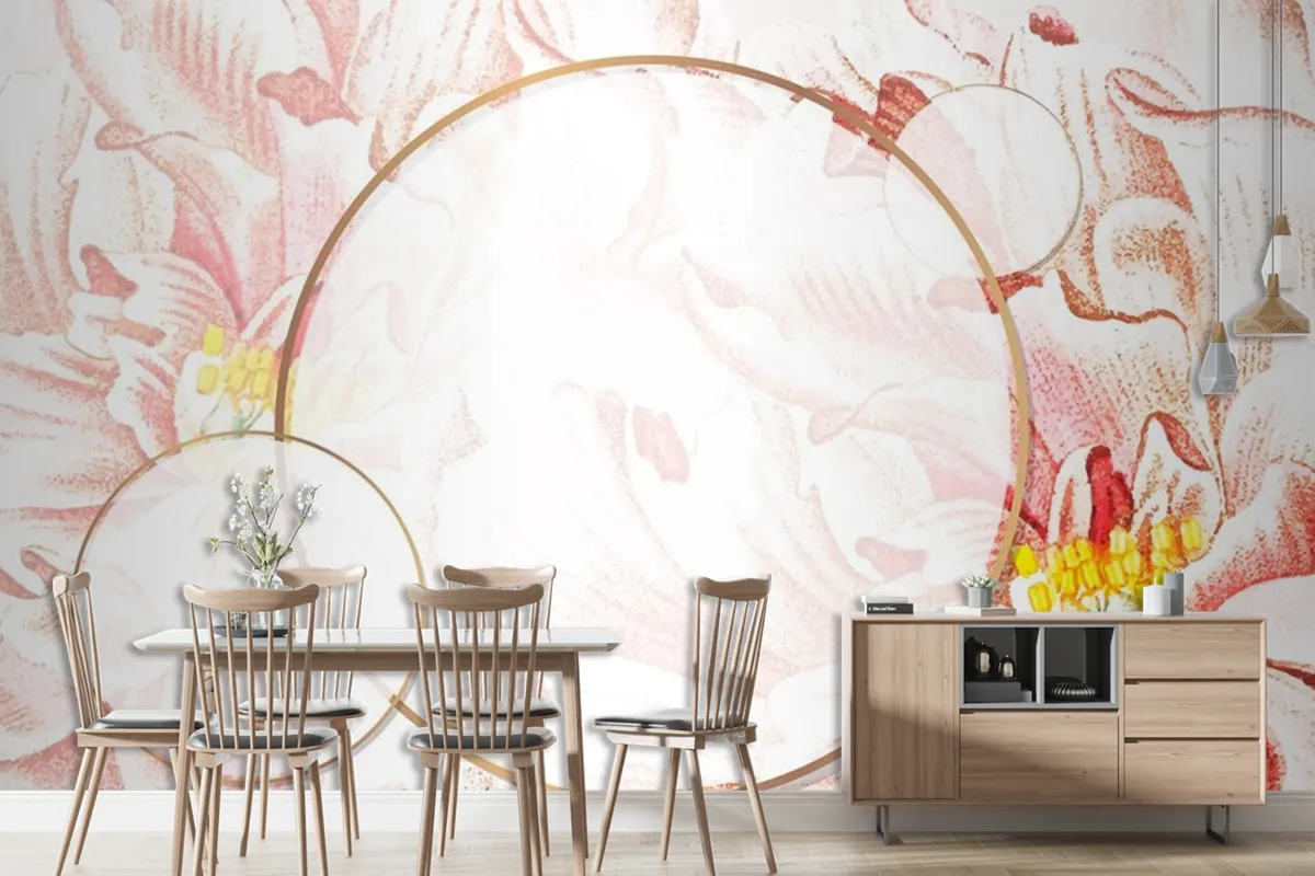 Yuvarlak Çiçekli Şakayık Çerçeve Duvar Kağıdı
