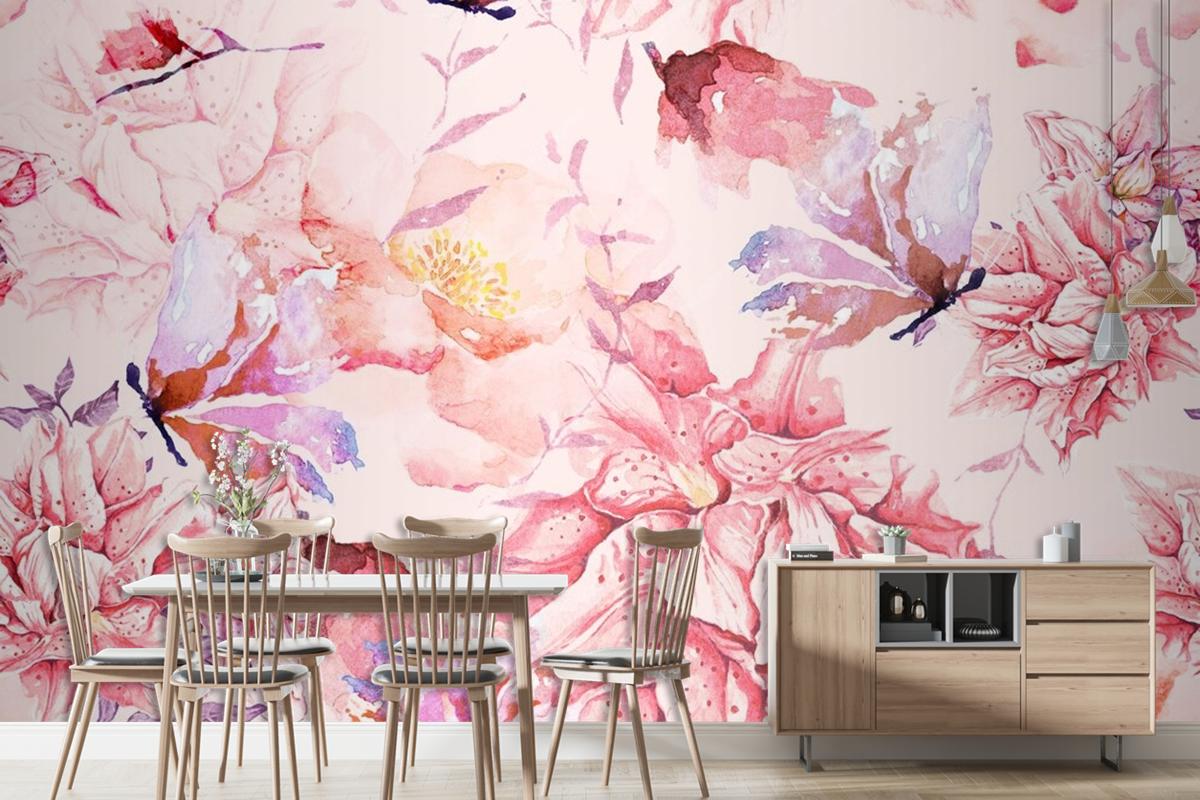 Zambaklar Ve Çiçek Açan Çiçeklerin Kusursuz Deseni Duvar Kağıdı